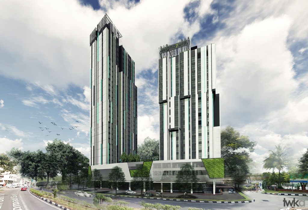 MIXED DEVELOPMENT IN IPOH, PERAK This mixed development in the heart of Ipoh consists of 2 towers: a 27-storey serviced apartment and a 13-storey hotel with retail shops located on the ground level. The facade of the towers display modern elegance with a sense of verticality. The height of the towers allow residents and hotel guests to enjoy the spectacular view of Gunung Lang and the Ipoh old town. This project is under feasibility study stage.