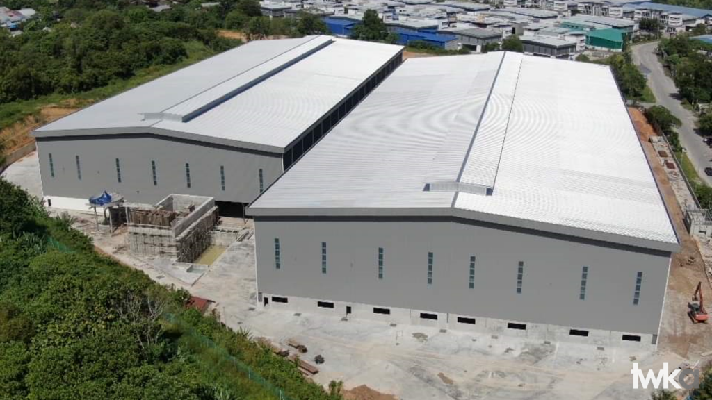 Glove Factory Semenyih, Selangor The glove factory is made up of two large steel structures connected by a link bridge and a small cafeteria at the side. Careful layout planning was done to ensure the circulation of the factory is smooth and safe for the workers. The facades are lined with numerous vertical window panels to allow ample of natural light into the factory, rows of louvred windows lined the top of the roof for good air ventilation.
