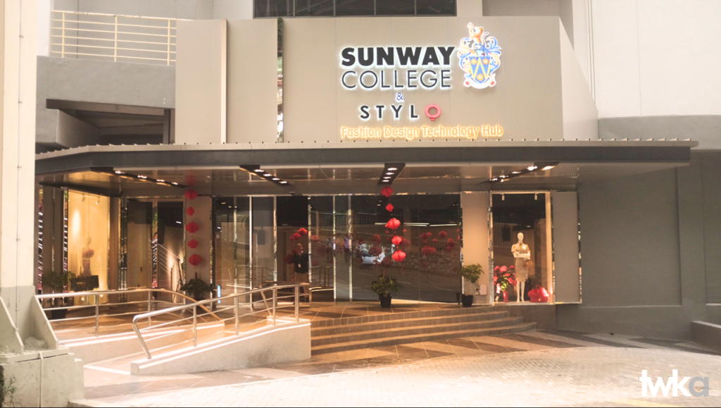 SUNWAY COLLEGE & STYLO: Fashion Design Technology Hub 9,000 sqft of interior renovation + entry design for a new fashion hub.The design explored different geometry relating to folding and pleating pattern of cloth making.